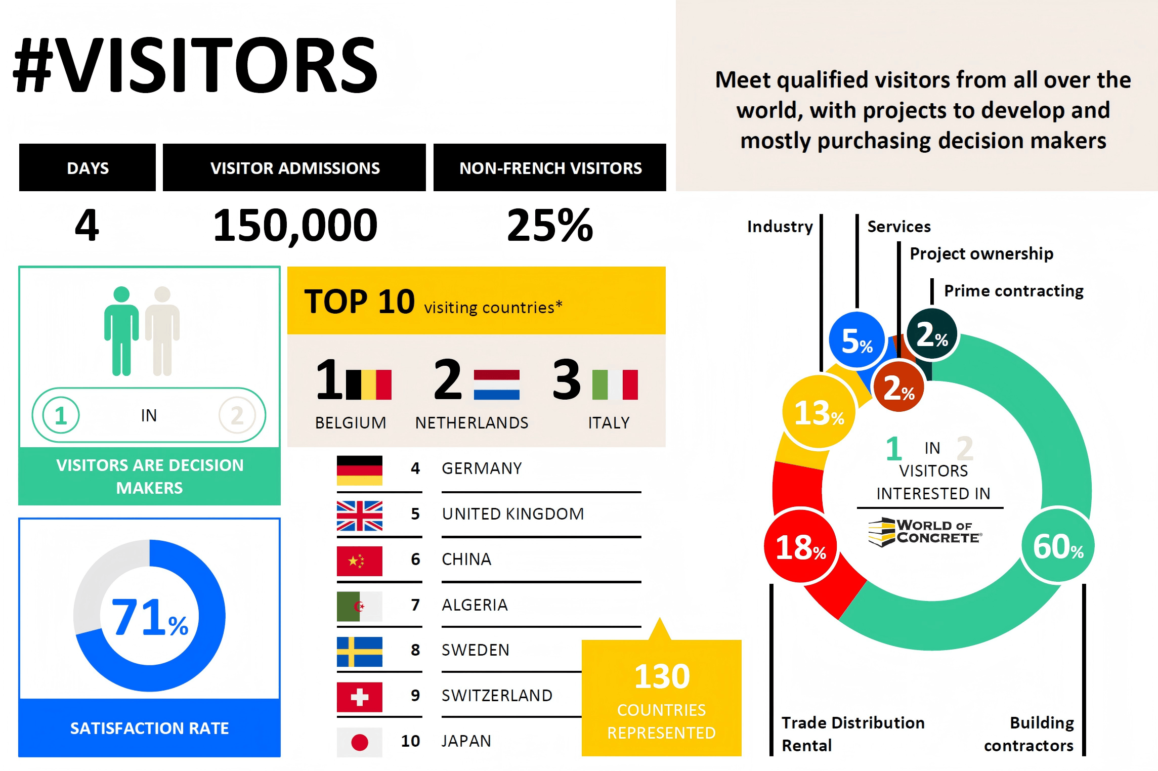 自1988年开办以来,凭仗极高的国际出名度取影响力,非、中东(EMEA)市场的焦点枢纽。依托得天独厚的地舆劣势,展会不只深度扎根欧洲市场,更精准辐射非洲、中东两大高潜力区域,从办方深耕行业调研,精准控制法国、、意大利、阿尔及利亚、肯尼亚、摩洛哥等12个焦点国度的市场动态,不只为展商供给极具价值的市场资讯,更全力指导区域内优良买家组团参不雅,让每一次参展都能实现精准对接、高效。这里,储藏着全球工程机械行业的庞大蓝海!数据市场潜力:到2030年,欧洲区域项目投资额将达925亿欧元;到2033年,中东区域投资额估计冲破2390亿欧元;至2040年,非洲区域投资额更将飙升至3070亿欧元。如斯复杂的市场体量取增加空间,让INTERMAT成为企业开辟新兴市场、抢占成长先机的不贰之选。相较于其他国际展会,INTERMAT正在深耕欧洲市场的根本上,更正在非洲、中东欧市场开辟方面独树一帜,为参展企业带来差同化的商机取合作劣势。